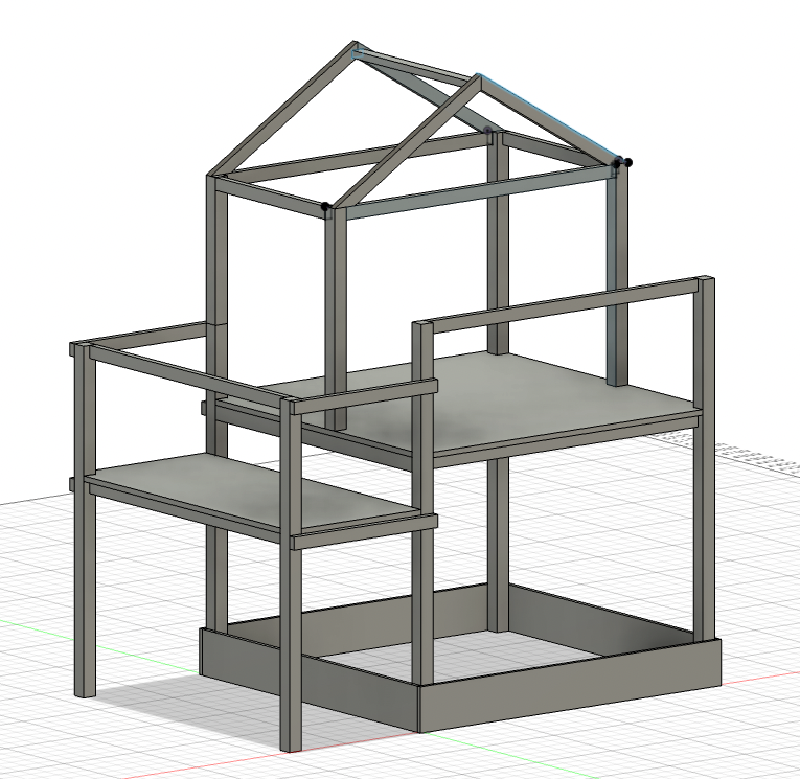 Since the scrap wood I was talking about are only planks, I need to buy just the wooden construction beams for the playground skeleton/foundation. But the question is, how many and which dimensions? I fired up the Fusion360 and in few hours, I made a model of the playground’s skeleton which revealed what do I need to buy. Note: I have not modelled the whole playground as per the image above, just the parts I was not sure about. And I will also use the model as a building instructions when putting it all together.