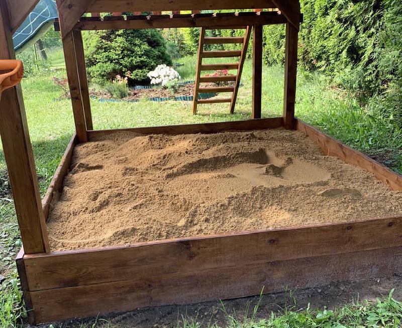 I have ordered 1 ton of the sand wondering if it is too much or not, fortunately the amount fits perfectly. Sand cost about 1500 CZK, which is fairly expensive (regular price is about 700CZK), but this was including transport and I have also taken it from the same company that provides containers intended for demolition waste (bricks, concrete, etc) and I did not want to seek another company just for the sand. They also have this certificate, that says that the sand is safe for the kids, which was another advantage.