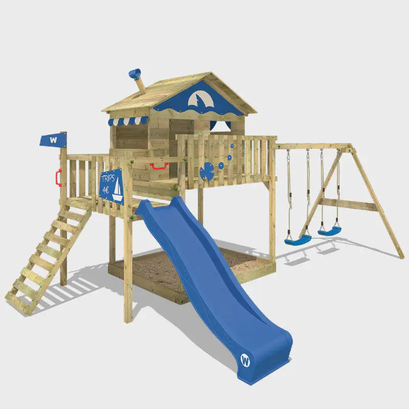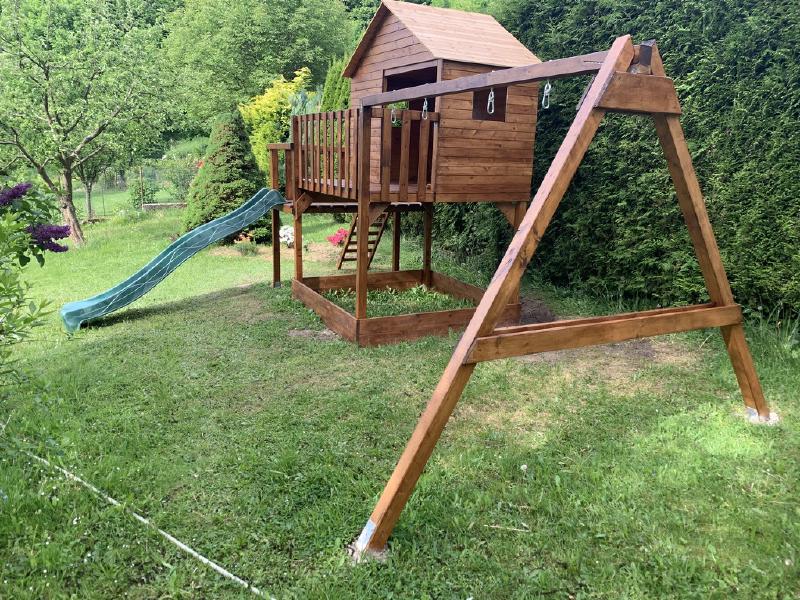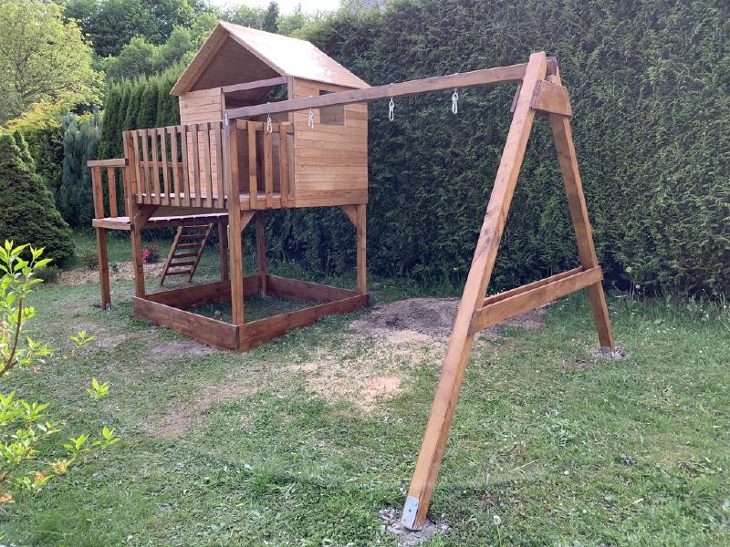 What kind of playground is it without swings? I have installed construction for the swings/hammocks/whatever with 4 swing hooks. The whole construction needed two more concrete fixing points to the ground. Because the construction is very solid and high enough, even the adults can use it (when attaching something different than swings π)