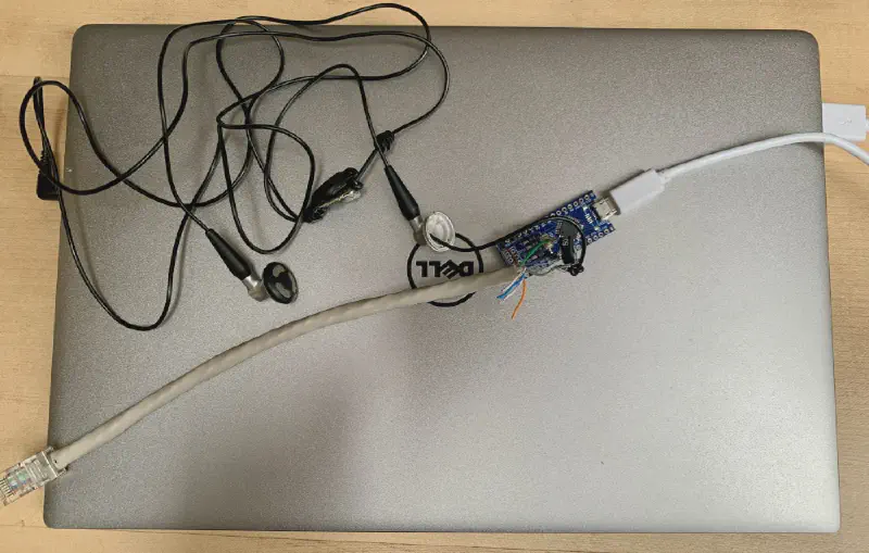 The problem with microphone keying is solved. Last piece of puzzle is to send the modulation signal to the radio. Since we already know the mic pinout, this was just matter of connecting the modulation signal from PC to the microphone input. I used old mobile phone headset cable to send modulation signal to the radio. The only thing to keep in mind was that the microphone input is very sensitive, and the line output of the PC is relatively high-power, so I put a potentiometer in signal line to attenuate the signal from PC to acceptable level, not to burn the microphone audio input circuitry in the radio.