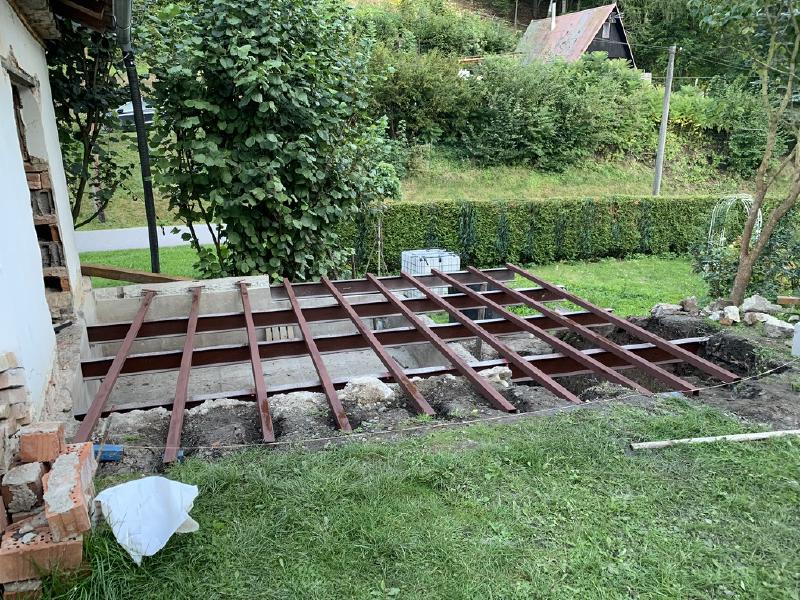 Second step was to build the steel frame. Some super thick steel beams were already there, but I still needed to source another thick one and then many of the thinner ones, to be able to do this steel “grid/matrix”, which will act as a support for wooden beams that will (finally) be base for mounting the terrace planks.
